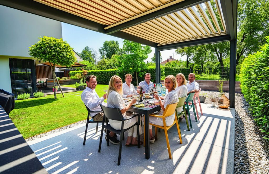 La pergola est une construction de jardin faite en poutres horizontales. La pergola est dite bioclimatique parce qu'elle s'adapte parfaitement aux conditions météorologiques